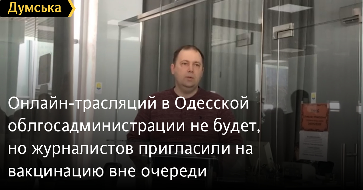 До этого директор департамента здравоохранения Одесской областной госадминистрации Наталья Одарий-Захарьева заверила, что журналисты могут прививаться вне очереди — для этого нужно только записаться на прививку в приложении «Дія» или позвонить в областной Центр общественного здоровья.