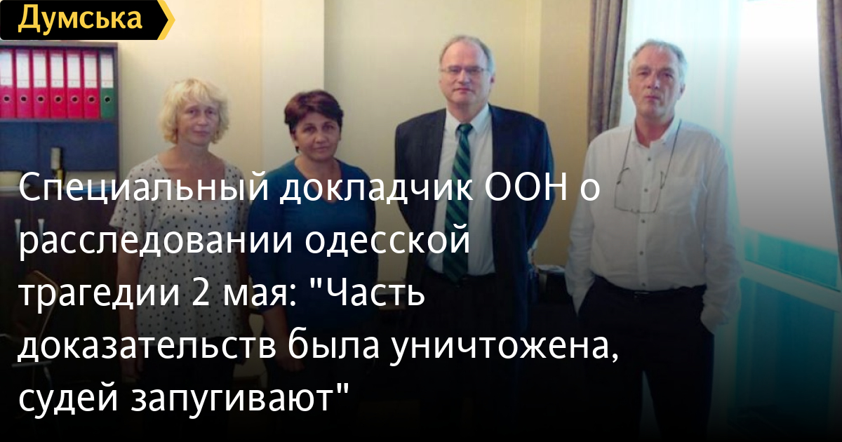 Я обеспокоен заявлениями о многочисленных недостатках в официальном расследовании событий этого дня. Из-за того, что почти сразу был разрешен доступ на место происшествия сторонникам единства Украины, представителям общественности или муниципальным властям, следователи потеряли большую часть потенциально ценного материала для судебно-медицинских экспертиз. Я обеспокоен сведениями о том, что правительство значительно сократило размер команды, которая расследует прошлогодние события до того, как получило возможность отчитаться. Медленное продвижение расследования и отсутствие прозрачности привели к росу общественного недовольства, породили благодатную среду для слухов и дезинформации. Мы сожалеем, что следственно-оперативная группа МВД Украины, которая проводит расследование событий 2 мая, отменила встречу в Одессе незадолго до назначенного времени без объяснения причин.