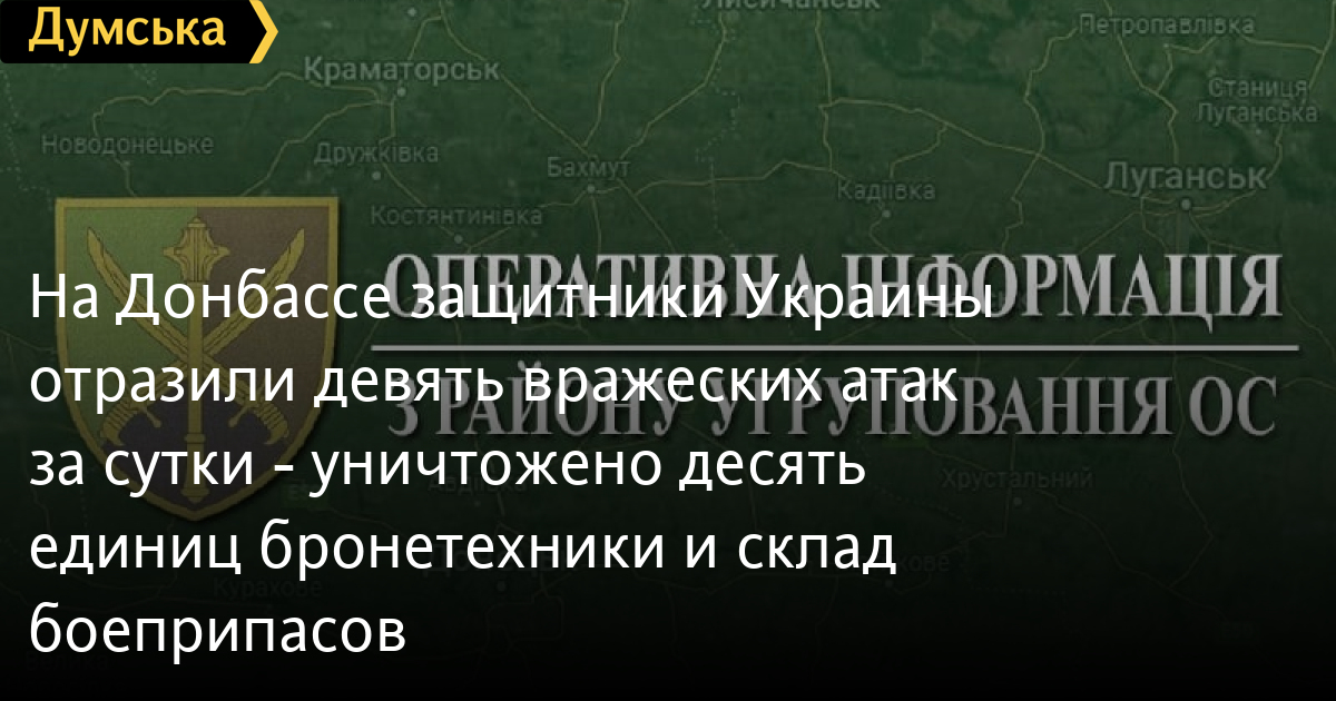 За минувшие сутки защитники Украины отразили девять вражеских атак на Донбассе и нанесли потери российским оккупантам.