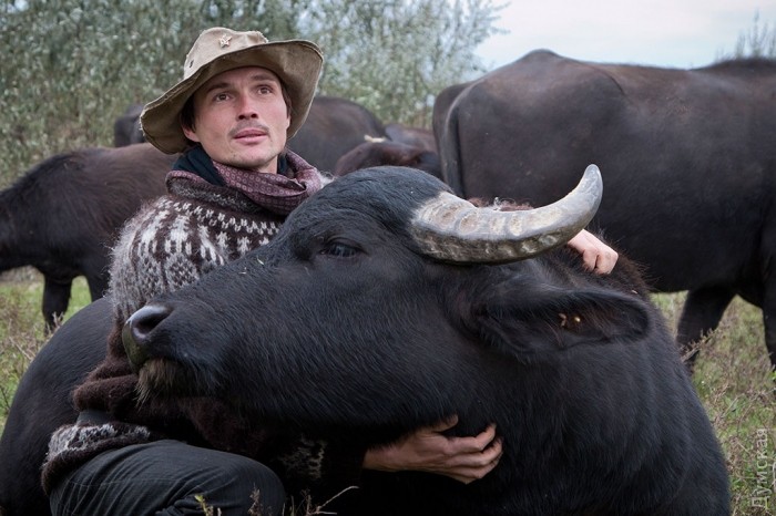 С буйволами немец общается жестами: поднимет голову вверх – приветствует, машет в сторону и назад – прогоняет. По словам Мишеля, эти животные по уровню интеллекта приближаются к собакам и выстраивают с каждым человеком персональные взаимоотношения. Они в основном любят ласку (кроме Раи), причем за почесывание сойдет и поездка верхом: человека на своем крупе эти могучие животные, способные тащить груз весом 250 кг и более, как ношу не воспринимают и с удовольствием катают желающих.