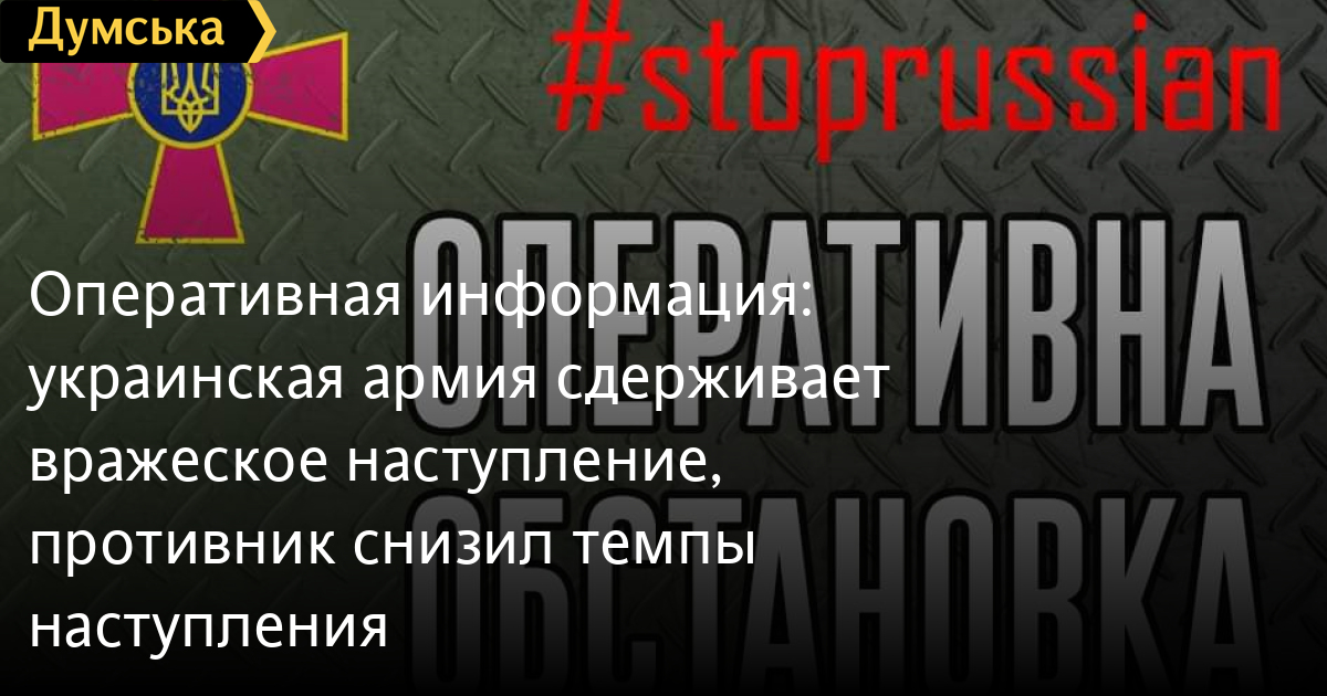 В Генштабе отметили, что противник снизил темпы наступления, его личный состав деморализован. Значительно увеличилось количество случаев дезертирства и мародерства.