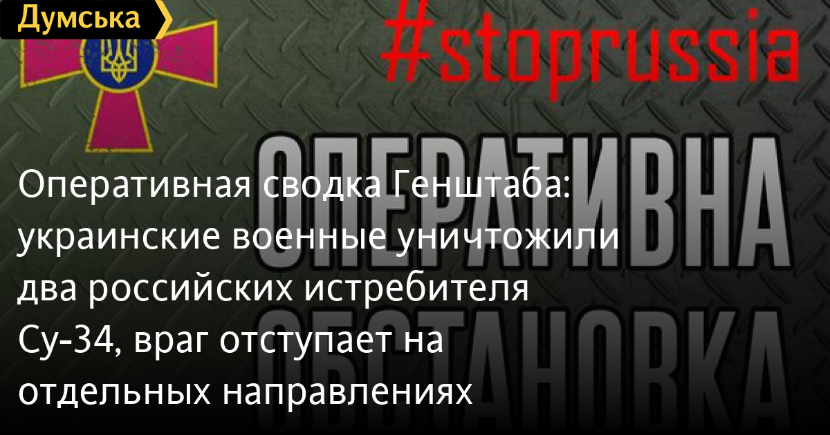 Противник продолжает нести потери и отступает на отдельных направлениях. Основные усилия оккупанты сосредотачивают на закреплении и содержании ранее занятых рубежей и районов обороны.
