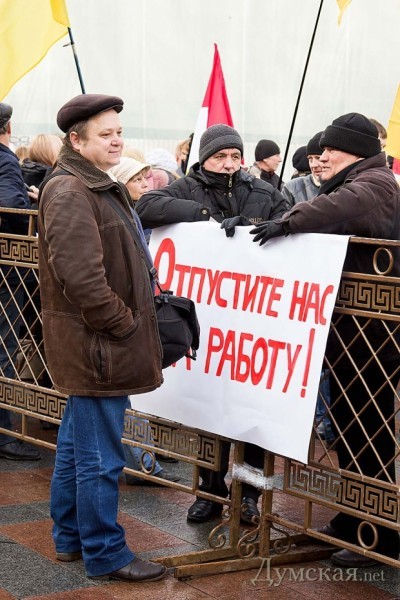 Власть восприняла угрозу всерьез: перед началом «штурма» у памятника Пушкину были размещены прицепы весьма устрашающего вида, а здание горсовета обнесли оградой. Кроме того, на площадь выгнали две сотни работников бюджетных организаций — отбивать нападение.