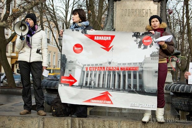 Одесские «евромайданщики» поиздевались над чиновниками горисполкома, которые, как известно, трепещут в ожидании бандеровского нашествия. Сегодня активисты оппозиции устроили под стенами муниципалитета, где вот-вот начнется сессия городского собрания, показательный «штурм».