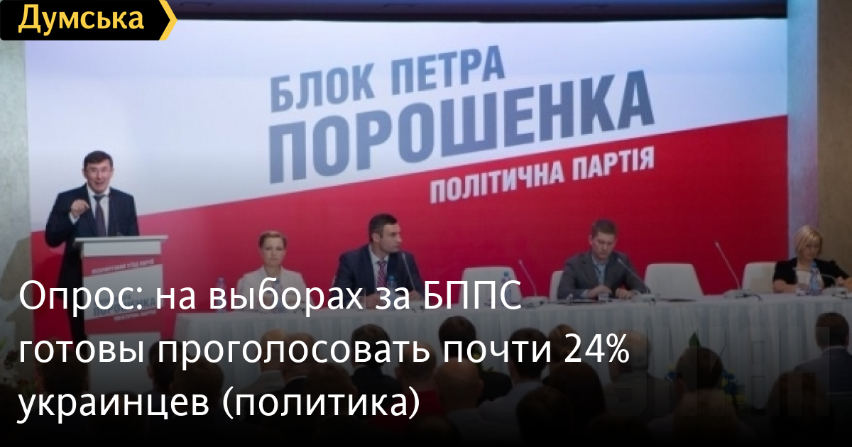 Так, за БППС готовы отдать свой голос 23,7% респондентов, за ВО «Батькивщина» — 11,9%, за «Оппозиционный блок» — 11,2%, за «Самопомич» — 10,5%, за Радикальную партию Олега Ляшко — 9,3%, за ВО «Свобода» — 7,4%.
