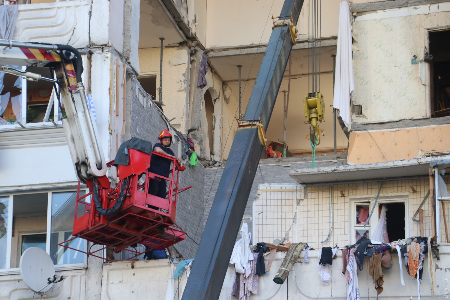 Отметим, что по состоянию на 18 часов 22 июня спасатели продолжают разбирать завалы на четвертом этаже дома. В разрушенной квартире пилят плиты для их дальнейшего поднятия краном.