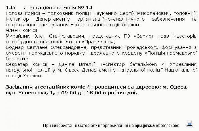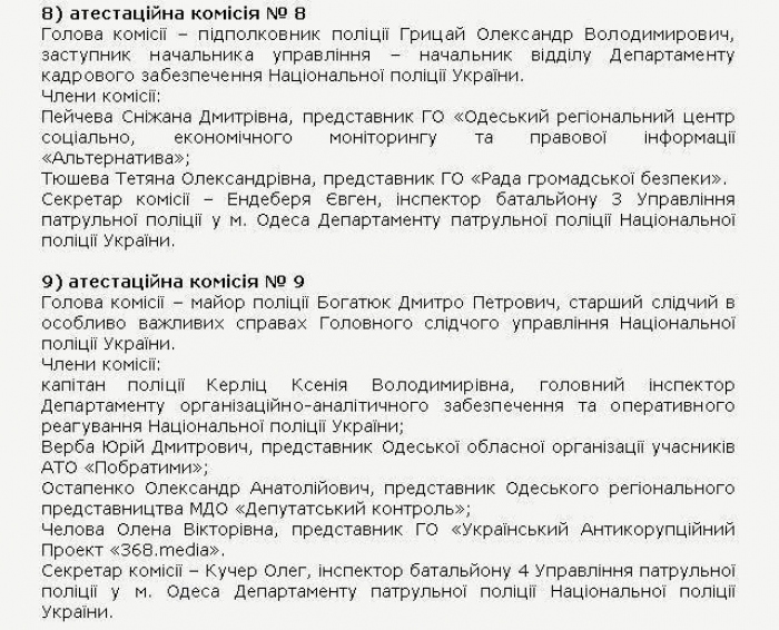 «Несмотря на то, что аттестация полицейских Одесской области началась еще 24 февраля, из-за постоянных кадровых скандалов Деканоидзе распорядилась скрыть список членов аттестационных комиссий Одесской области. Как вдруг случилось чудо: 4 марта после многократных настойчивых требований журналистов на сайте Главного управления Нацполиции в Одесской области появился перечень лиц, назначенных приказом Деканоидзе комплектовать личный состав местных, так сказать, «правоохранителей». Но уже через два часа этот список исчез, а в отношении сотрудника пресс-службы, который его разместил в открытом доступе, полицейское начальство даже собирается начать служебное расследование», — написал он.