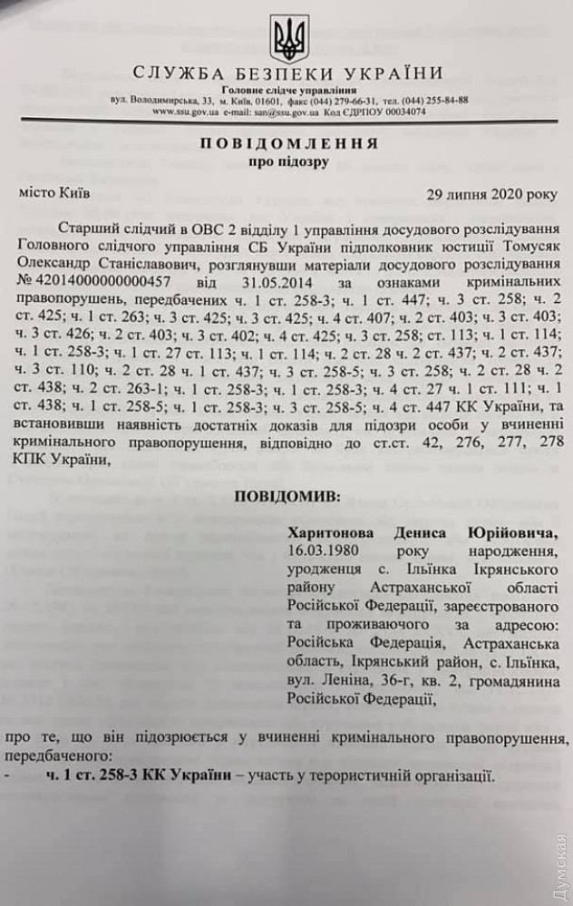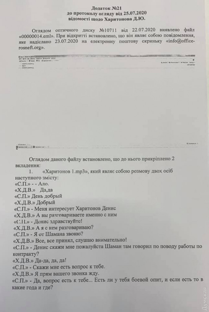 Подпись следователя СБУ стоит и на расшифровках разговоров россиян с вербовщиком. Например, под протоколом беседы с Харитоновым, аудиозапись которой ранее обнародовала Янина Соколова.