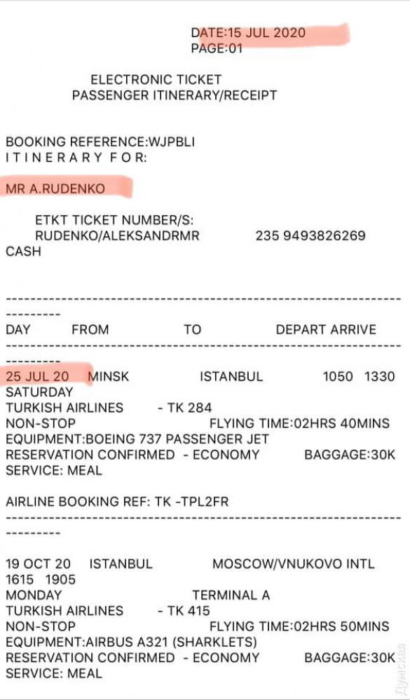 Российские боевики должны были вылетать через Беларусь в Стамбул 25 июля по билетам, взятым за десять дней до того. Однако рейс по неизвестным причинам, которые еще надо установить, не состоялся и был перенесен. Головорезы остались в Беларуси, а 29 июля их задержали сотрудники КГБ - главной спецслужбы РБ.