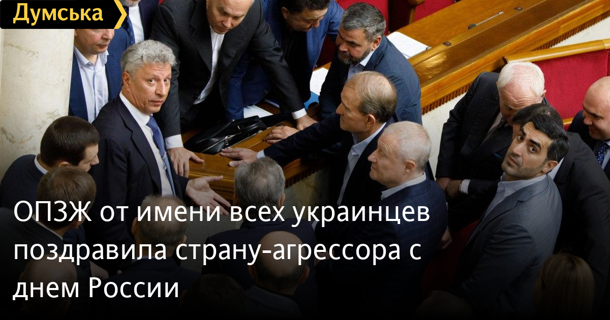 Партия ОПЗЖ поздравила граждан страны-агрессора с днем России «от имени всех украинцев, выступающих за восстановление сотрудничества и нормализацию отношений с Российской Федерацией».