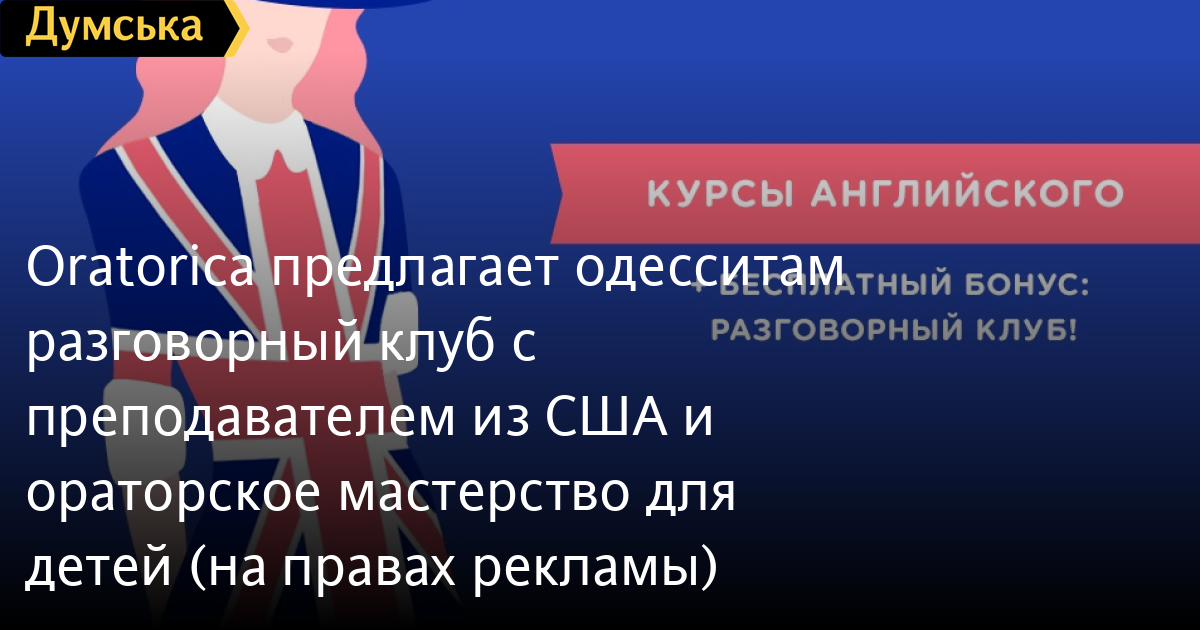 Oratorica предлагает одесситам разговорный клуб с преподавателем из США и ораторское мастерство для детей (на правах рекламы)Этим летом школа европейских языков Oratorica приготовила для клиентов новые услуги. Желающие усовершенствовать свои знания английского языка получили возможность посещать разговорные клубы с профессиональным преподавателем-носителем языка из США. Студенты получают абонемент на разговорный клуб в качестве бесплатного бонуса при покупке любого курса по английскому языку. Разговорный клуб поможет студентам начать свободно говорить по-английски, преодолеть языковой барьер, найти новых друзей и просто провести свое свободное время с пользой. Для родителей, желающих чтобы их ребенок поборол страх «быть в центре внимания», приобрел уверенность при общении с детьми своего возраста, грамотно и выразительно излагал свои мысли, Oratorica открыла курсы ораторского и актерского мастерства для детей. Занятия по искусству речи подразумевают изучение техник и механизмов обучения на основе устных упражнений, скороговорок, вокальных упражнений, художественной литературы, и используются для развития артикуляционного аппарата. Кроме того, у полиглотов появилась возможность выучить еще несколько иностранных языков. На курсах польского языка в Oratorica можно легко выучить этот непростой язык под руководством профессиональных преподавателей, обладающих большой практикой в стране-носителе языка, солидным опытом общения и глубокими знаниями. А для тех, кто мечтает начать говорить на языке Гете на хорошем уровне за короткий срок, знать один из важнейших рабочих языков в Европейском союзе, опытные преподаватели Oratorica обеспечат качественное его усвоение в достаточно короткий срок. Детальная информация по телефону +380950532625 и на сайте школы СМЕРТЬ РОССИЙСКИМ ОККУПАНТАМ! Заметили ошибку? Выделяйте слова с ошибкой и нажимайте control-enter |