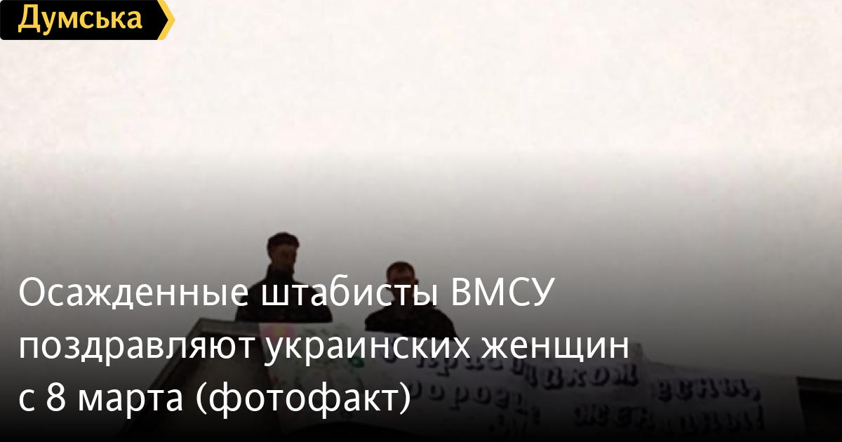 Военнослужащие осажденного российскими войсками штаба ВМСУ поздравляют женщин с 8 марта большим плакатом.