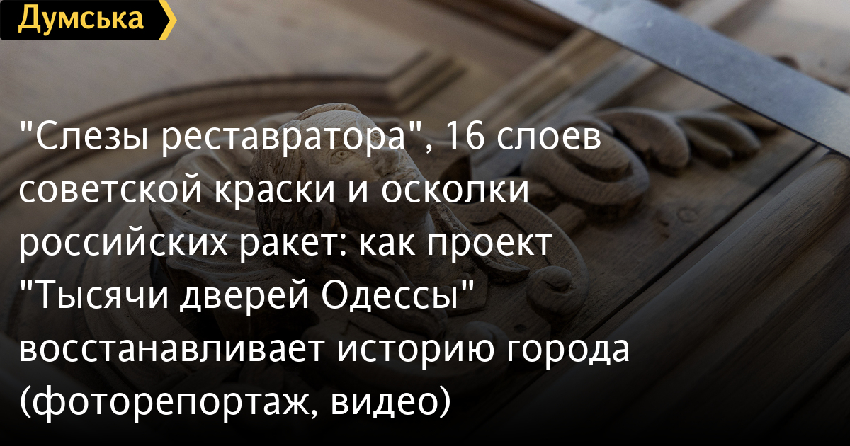 За полтора года до полномасштабного вторжения команда проекта выиграла грант Европейского союза на восстановление 40 одесских дверей. Согласно концепции, одесситы оставляют на сайте проекта заявки, а реставраторы выбирают наиболее редкие и интересные с исторической точки зрения экземпляры, те, которые находятся на грани утраты не только в доме, но и во всем городе.