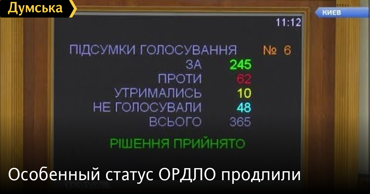 Верховная Рада продлила особенный статус отдельных районов Донецкой и Луганской области. За законопроект Президента Петра Порошенка проголосовали 245 нардепов .