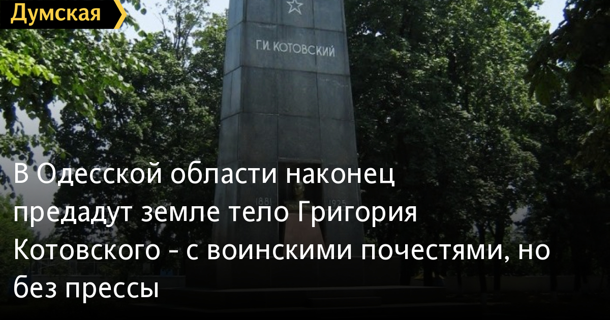 В Одесской области наконец предадут земле тело Григория Котовского — с воинскими почестями, но без прессы