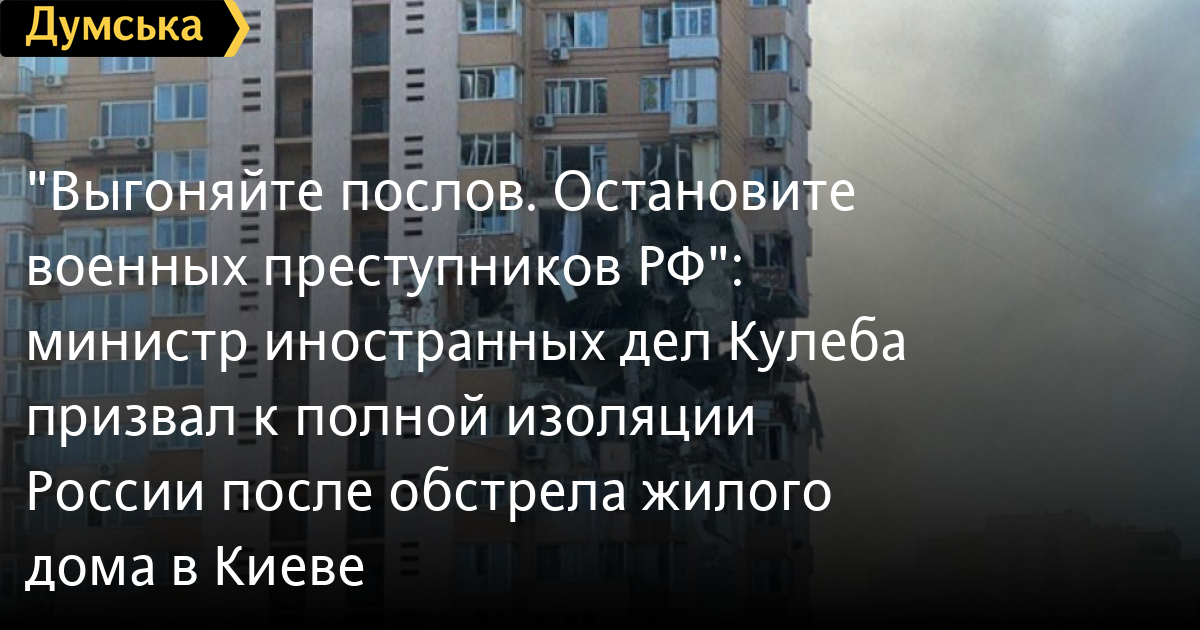 «Выгоняйте послов. Остановите военных преступников РФ»: министр иностранных дел Кулеба призвал к полной изоляции России после обстрела жилого дома в Киеве
