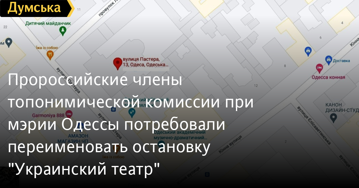 Присутствовавшая на заседании директор муниципального департамента культуры и туризма Татьяна Маркова мягко объяснила, что в том месте много учреждений, в том числе и театр кукол, а одесситы привыкли использовать название «Украинский театра».