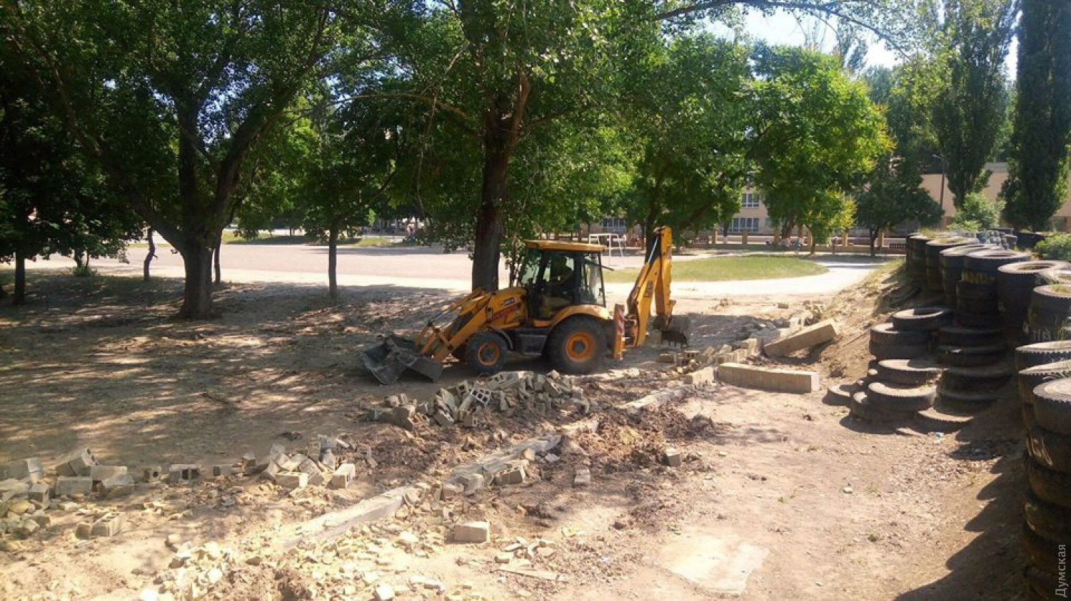Возле школы №55 на Ильфа и Петрова бульдозер сносит остатки забора, разрушенного несколько дней назад неизвестными вандалами. Ранее начальник муниципального департамента образования и науки Елена Буйневич сообщила «Думской», что забор будет восстановлен, а поисками злоумышленников занимается полиция. Как передает корреспондент «Думской», демонтируют лишь разрушенные части ограды, уцелевшие секции остались на месте. Будет ли она заменена полностью или частично — неизвестно. Напомним, школьный забор разрушили в ночь на 5 июня. Вандалы буквально разгромили установленную полтора месяца назад ограду. В то же время, происшествие помогло выявить еще одну проблему. Как оказалось, забор был возведен некачественно, строители явно сэкономили на материалах, поэтому крепкая на вид ограда оказалась весьма хрупкой и, вполне возможно, могла представлять опасность для детей. Фото Ларисы Коваль СМЕРТЬ РОСІЙСЬКИМ ОКУПАНТАМ! Помітили помилку? Виділяйте слова з помилкою та натискайте control-enter |