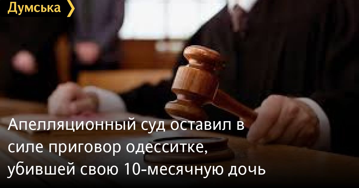 Апелляционный суд оставил в силе приговор одесситке, убившей свою 10-месячную дочьАпелляционная инстанция оставила в силе приговор Киевского районного суда Одессы, который приговорил женщину к 11 годам лишения свободы за убийство своего десятимесячного ребенка. Напомним, молодая женщина, находясь в состоянии алкогольного опьянения, умышленно выбросила своего десятимесячного ребенка из окна 8-го этажа. Когда бабушка осужденной вернулась домой и не нашла ребенка, она ответила, что девочка пошла гулять. Бабушка сразу начала искать ребенка в квартире, но не нашла. В этот момент в квартиру зашла соседка и сказала, что под балконом лежит нечто светлое. Окно на балконе было открыто. Бабушка выбежала на улицу и обнаружила тело девочки под балконом. Прибывшие на место происшествия медики констатировали смерть ребенка. Во время судебных заседанияй женщина свою вину не признавала и рассказала, что она вышла курить на балкон с ребенком, когда возвращалась в комнату, оставила ее и открытое окно, а ребенок выпал сам. Однако экспертами установлено, что ребенок не мог самостоятельно забраться на подоконник и выпасть из окна. Судом также установил, что до трагедии обвиняемая всегда выходила курить в тамбур квартиры и никогда не курила на балконе. Также в крови ребенка обнаружено 0,39% этилового спирта — такое количество может оказаться токсичным для ребенка. Это обстоятельство еще больше снижает вероятность совершения ребенком активных действий. СМЕРТЬ РОССИЙСКИМ ОККУПАНТАМ! Заметили ошибку? Выделяйте слова с ошибкой и нажимайте control-enter |