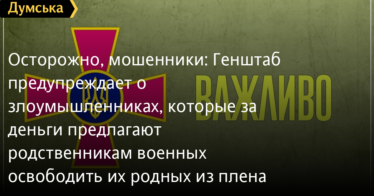 Как информирует Генеральный штаб ВСУ, злоумышленники пользуются эмоциональным состоянием родных и близких и предлагают за деньги «предоставить информацию» о военном и «способствовать освобождению из плена».