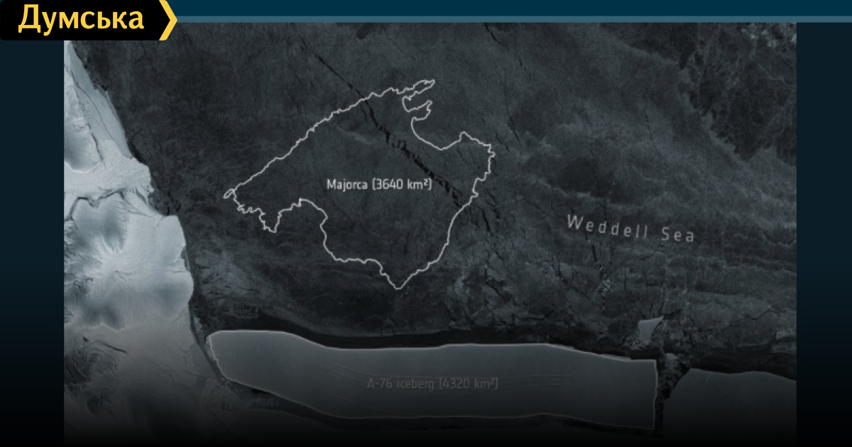 От Антарктиды откололся огромный айсберг площадью больше испанского острова МайоркаВ западной части шельфового ледника Ронне в Антарктиде откололся гигантский айсберг общей площадью примерно 4320 квадратных километров. Об этом сообщает сайт Европейского космического агентства (ESA). Айсберг получил название «А-76». Его длина 170 километров, ширина — 25 километров. На снимке ESA приводит в сравнение размер айсберга с испанским островом Мальорка, у которого площадь 3640 квадратных километров. На данный момент А-76 находится в море Уэдделла. В море также находится айсберг А-32А, площадь которого в момент откалывания от Антарктиды составила 3880 квадратных километров. СМЕРТЬ РОСІЙСЬКИМ ОКУПАНТАМ! Помітили помилку? Виділяйте слова з помилкою та натискайте control-enter |
