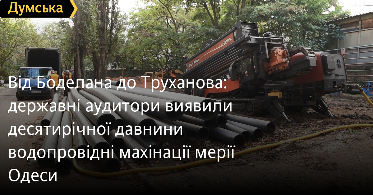Від Боделана до Труханова: державні аудитори «виявили» десятирічної давнини водопровідні махінації мерії ОдесиПро старі корупційні оборудки одеських мерів, які спочатку передали за безцінь міський водоканал приватній фірмі, а потім ще й «злили» на його реконструкцію бюджетні кошти, отримані в кредит, несподівано згадала Державна аудиторська служба. У своїй заяві відомство викладає історію приватизації водопровідно-каналізаційного господарства, яку було здійснено 2003 року, коли мером був Руслан Боделан. «Одеська міськрада практично за безцінь передала в оренду на 49 років цілісний майновий комплекс комунального підприємства «Одесводоканал». До його складу увійшли нерухоме майно, інженерні мережі та комунікації водопостачання та водовідведення, а також багаторічна клієнтська база, оборотні активи тощо. Договір оренди підписали колишній міський голова та гендиректор комерційної структури — ТОВ «Інфокс». Унаслідок ухвалення такого неоднозначного та суперечливого управлінського рішення Одеська міська рада фактично передала в оренду приватній компанії не лише готовий «бізнес», а й стратегічно важливий сектор забезпечення життєдіяльності міста», — наголошується в повідомленні. Згодом, після приходу до влади в місті Едуарда Гурвіца, мерія вирішила провести капітальний ремонт водопровідної мережі. Для цього комунальне підприємство «Агентство програм розвитку «Одеси» протягом 2007-2009 років отримало кредит Міжнародного банку реконструкції та розвитку під державні гарантії на суму понад 45 млн доларів США. Саме за рахунок цих коштів було проведено реконструкцію об'єктів цілісного майнового комплексу. Роботи велися в періоди, коли містом керували Олексій Костусєв, Олег Бриндак (як в.о. мера) і Геннадій Труханов. В експлуатацію побудовані об'єкти ввели в жовтні 2015 року. При цьому доходи від експлуатації водоканалу продовжувало отримувати ТОВ «Інфокс». «Тобто Одеська міська рада за рахунок бюджетних коштів погасила кредит, а відремонтованим майном фактично безоплатно користується приватна компанія», — констатують аудитори. У підсумку тільки за період, який охопила ревізія, місто необґрунтовано витратило понад 370 млн грн на погашення кредиту і зазнало збитків у вигляді недоотриманих доходів на майже 338 млн грн. У повідомленні йдеться, вочевидь, про масштабний проєкт реконструкції «Південного басейну каналізування», який передбачав будівництво колектора глибокого залягання, напірного трубопроводу, двох каналізаційно-насосних станцій, які обслуговують територію від Аркадії до Чорноморки. Підрядником цих робіт — ви не повірите! — була компанія «Ростдорстрой», яку пов'язують із чинним мером Геннадієм Трухановим. Співвласники компанії «Інфокс», що орендує водоканал, — уже покійний бізнесмен Микола Лісін і екс-міністр екології Микола Злочевський, нещодавно засуджений у справі про рекордний хабар у 6 млн доларів для керівників антикорупційних структур (він відбувся штрафом і «донатом» у 650 млн грн на потреби Збройних сил). Держаудитслужба не уточнила, як розпорядилася набутим знанням про водопровідні афери одеських мерів. Чи передала вона матеріали правоохоронцям? А ще чому в принципі зацікавилася справами давно минулих днів? «Думская» надіслала у відомство інформаційний запит і сподівається незабаром отримати