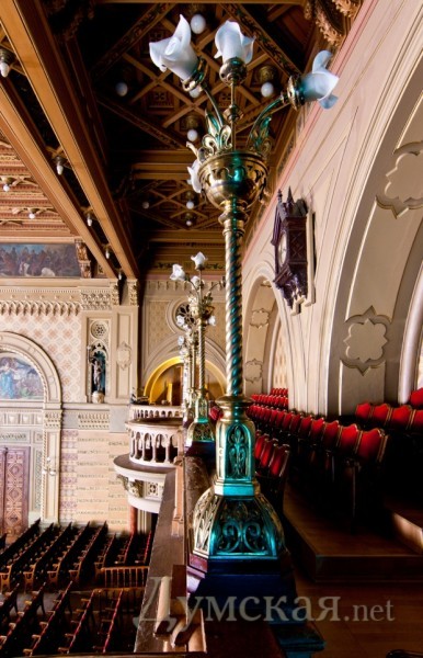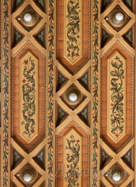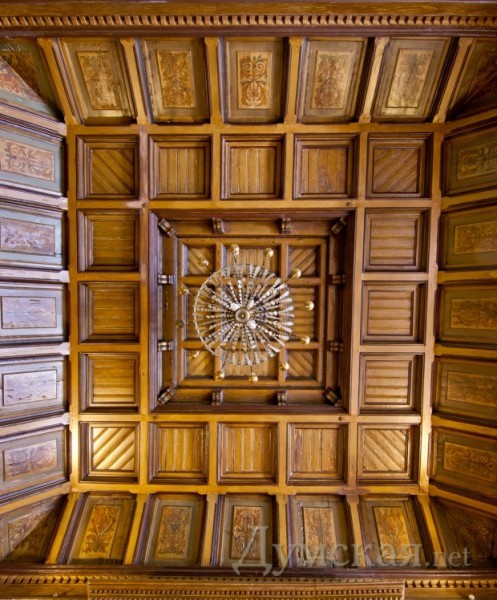 Резной кесоннированный потолок главного зала отделан ливанским кедром.