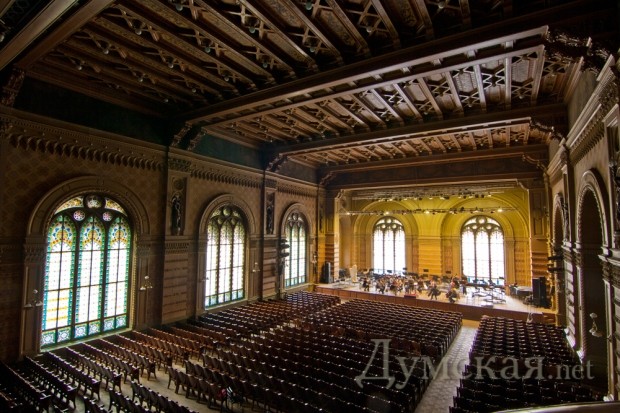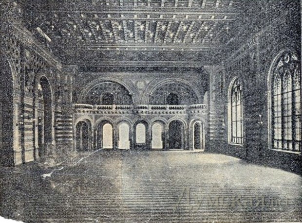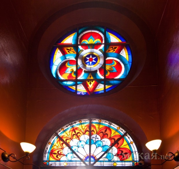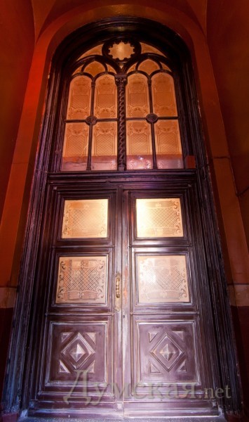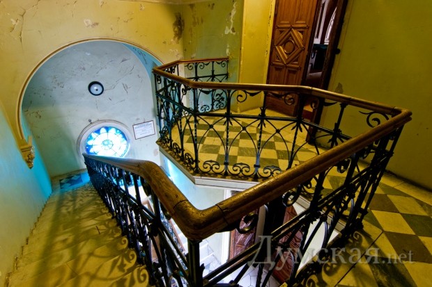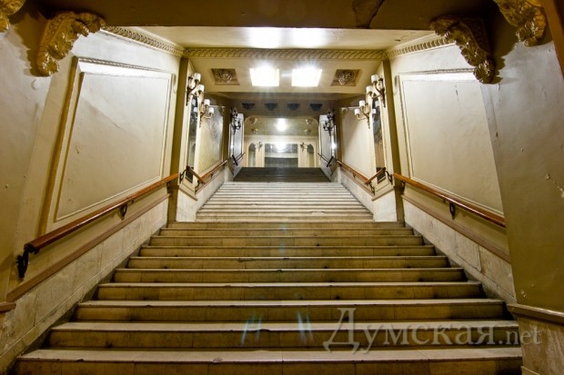 Из подъезда — вход в помещение купеческой управы, в зал купеческих собраний и комитетов биржи на втором этаже. К сожалению, в отличие от ресторана «Бернардацци», любезно разрешившего провести фотосъёмку в своём помещении (раньше здесь находился ресторан Кузнецова, а в советское время — Дом Актеров), казино «Ришелье», разместившееся в бывшем Клубе Иностранных моряков, ныне официально закрытое, предпочло отказать нашей редакции. Посему будем пользоваться теми свидетельствами, которые дали журналисты, описывая роскошь новой биржи в день её открытия, и историческими фотографиями: