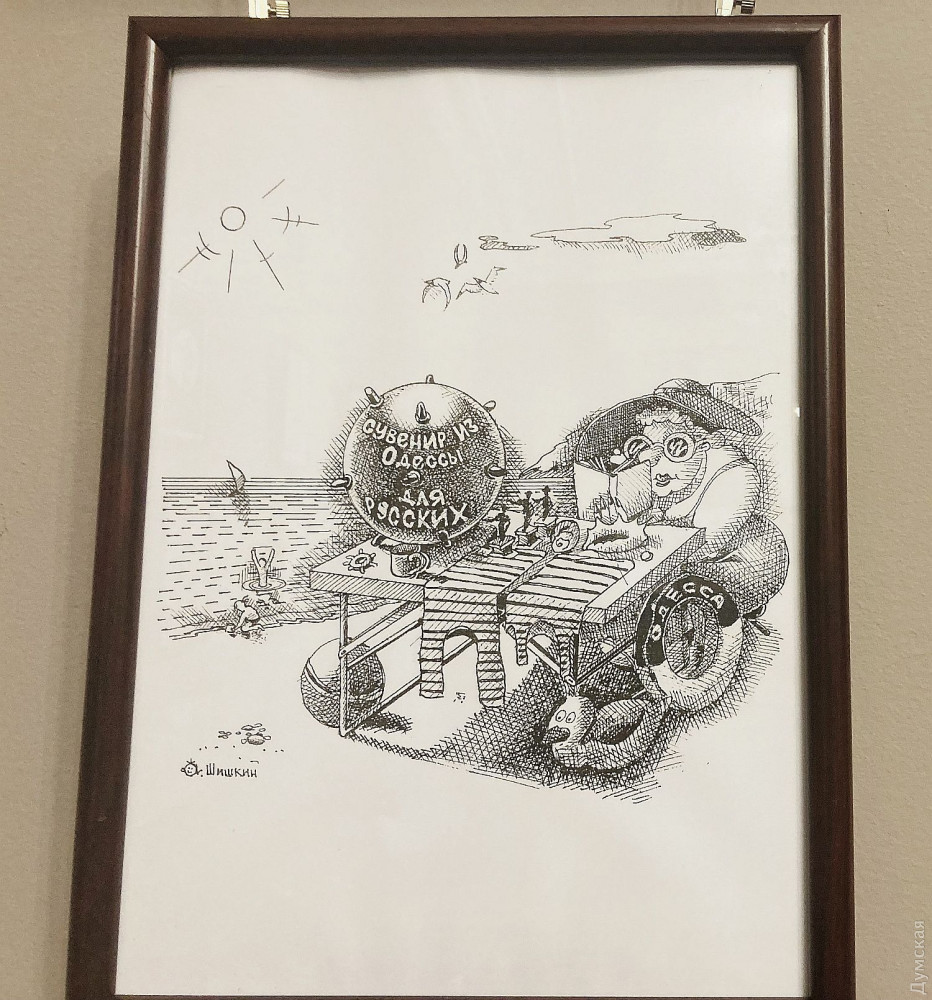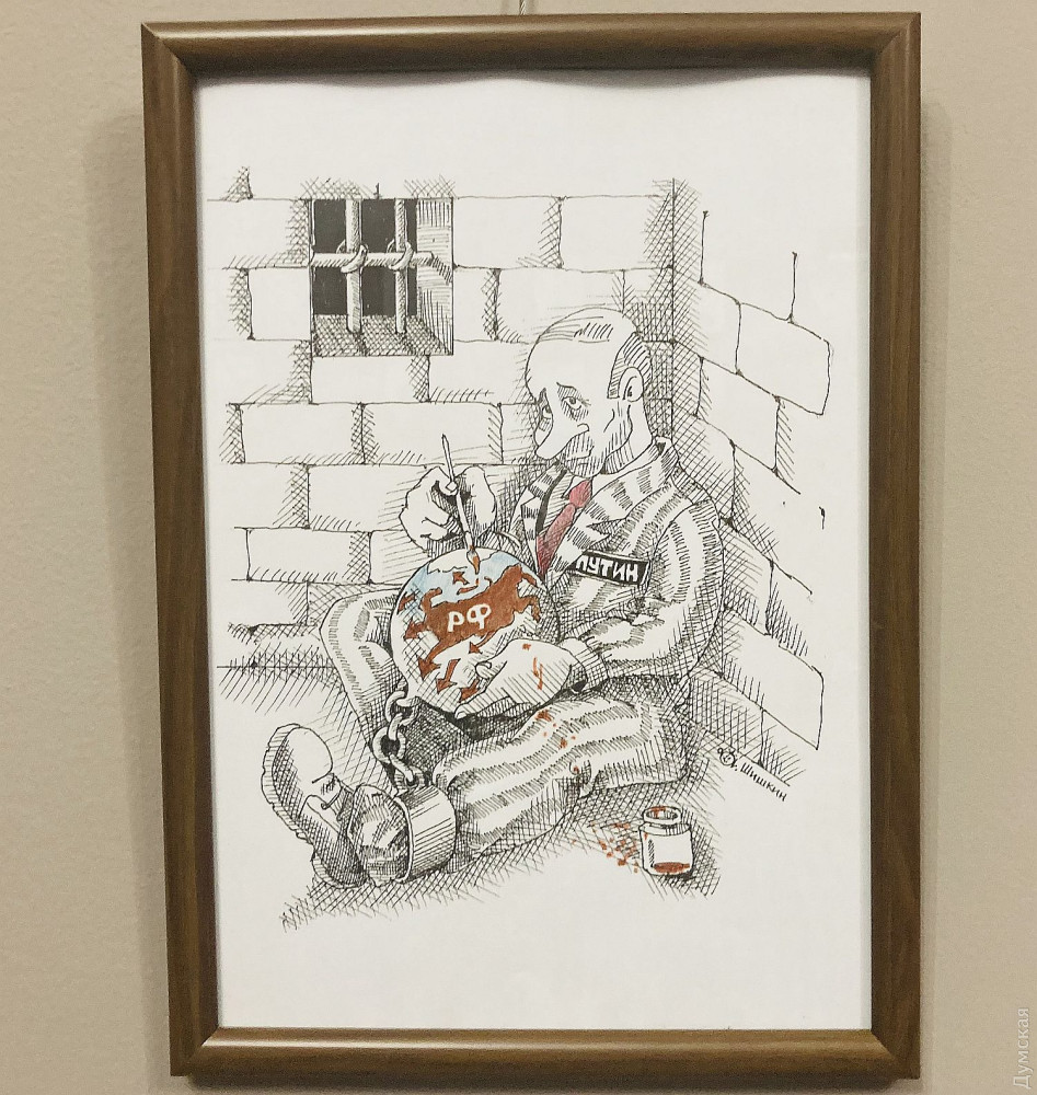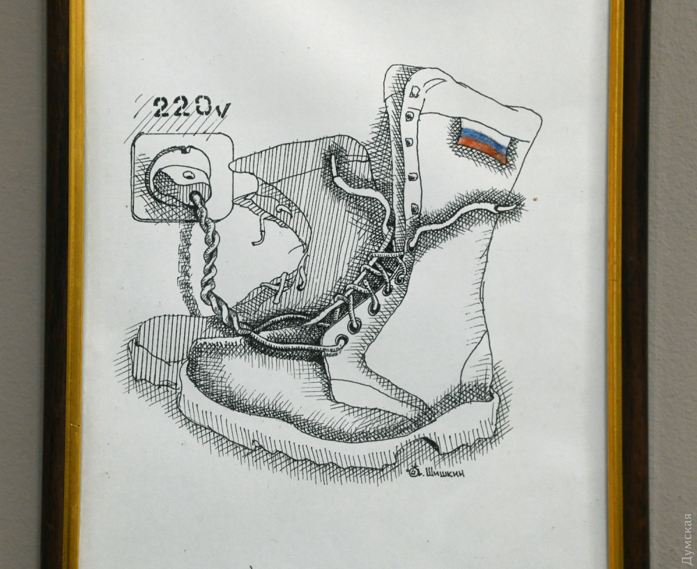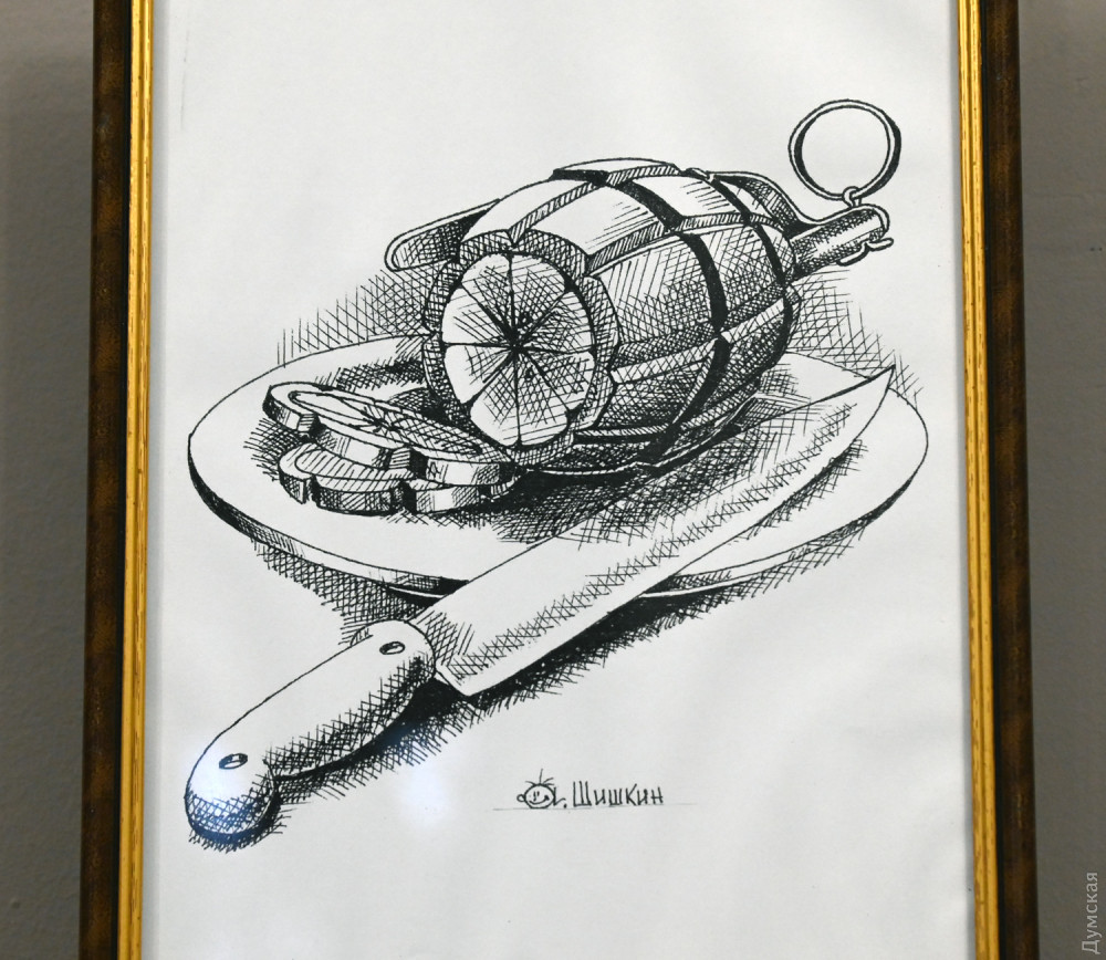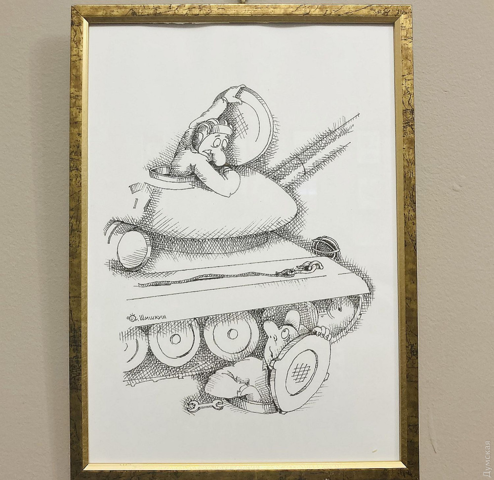Заведующий художественно-постановочной частью музкомедии Андрей Шишкин представил свои карикатуры на злобу дня (их тоже можно купить с благотворительной целью). Карикатурой он стал заниматься еще в училище, до этого закончил художественную школу, позже — театрально-художественное училище.