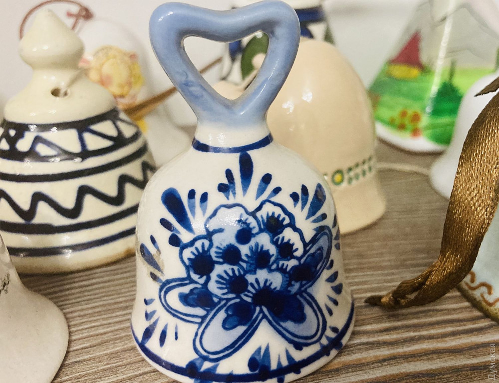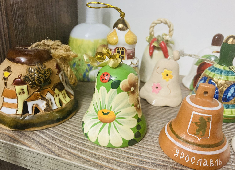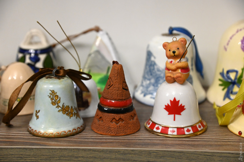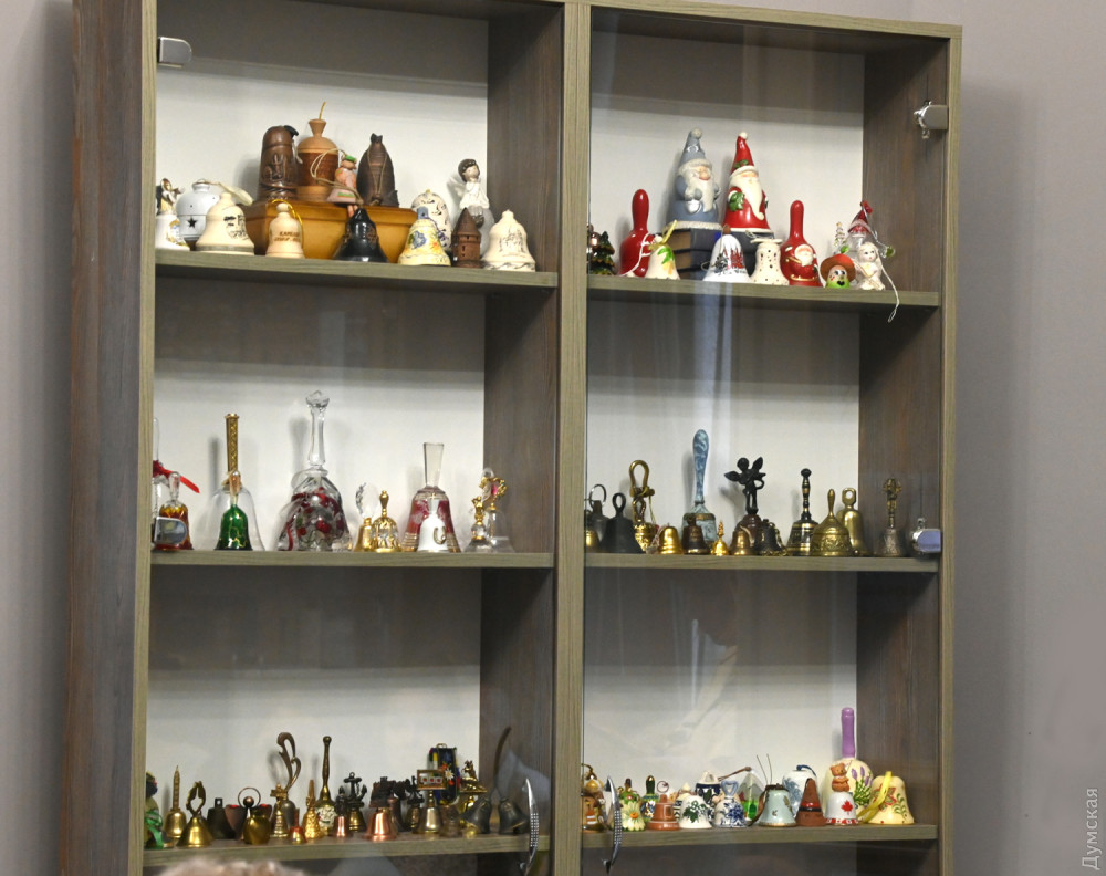 В застекленном шкафу представлены 150 колокольчиков из личной коллекции Елены Редько — директора-художественного руководителя Одесского академического театра музыкальной комедии имени Михаила Водяного, заслуженного работника культуры Украины. Всего коллекция колокольчиков из разных уголков мира насчитывает 600 экземпляров, а данную часть Елена предназначает для благотворительности. Звенящие экспонаты можно купить, зная, что деньги пойдут на нужды теробороны.