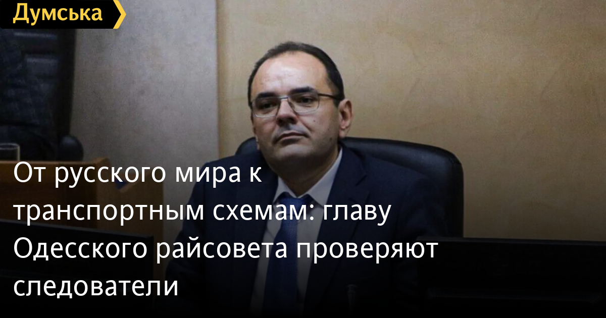 Від «русского мира» до транспортних схем: голову Одеської райради перевіряють слідчіОдразу декількома епізодами, пов'язаними з головою Одеської районної ради Віталієм Барвіненком, зайнялися правоохоронці. Як повідомили джерела «Думської», останній представник партії «Довіряй ділам», який досі залишається при владі, може отримати відразу два удари. Перше розслідування стосується подій 2014 року, коли політик відкрито висловлював проросійські погляди, просував ідеї «русского мира» і навіть оголосив себе лідером «Бессарабської республіки». Друга справа, за даними наших джерел, пов'язана з пасажирськими перевезеннями, куди голова райради активно втрутився, знищуючи міський електротранспорт в інтересах маршрутного бізнесу. На цьому він намагався неабияк заробити та навіть залучив Олексія Морозова, який колись курував нелегалів-перевізників. Щоб реалізувати цю схему, Геннадій Труханов перерозподілив транспортний напрямок між своїми заступниками — забрав його у Павла Вугельмана і передав Олександру Філатову (по суті — Морозову). Офіційно це сталося за кілька днів до того, як стало відомо про позбавлення Труханова громадянства. «Таким чином відбувається політична зачистка групи Труханова», — впевнений наш співрозмовник. Як писала раніше «Думська», вже в грудні Барвіненко має намір скласти свої повноваження. Він вважався сірим кардиналом «ДД» за часів ексмера Одеси Геннадія Труханова. Багато однопартійців останнього звинувачували голову райради в провалі їхнього шефа. СМЕРТЬ РОСІЙСЬКИМ ОКУПАНТАМ! Помітили помилку? Виділяйте слова з помилкою та натискайте control-enter