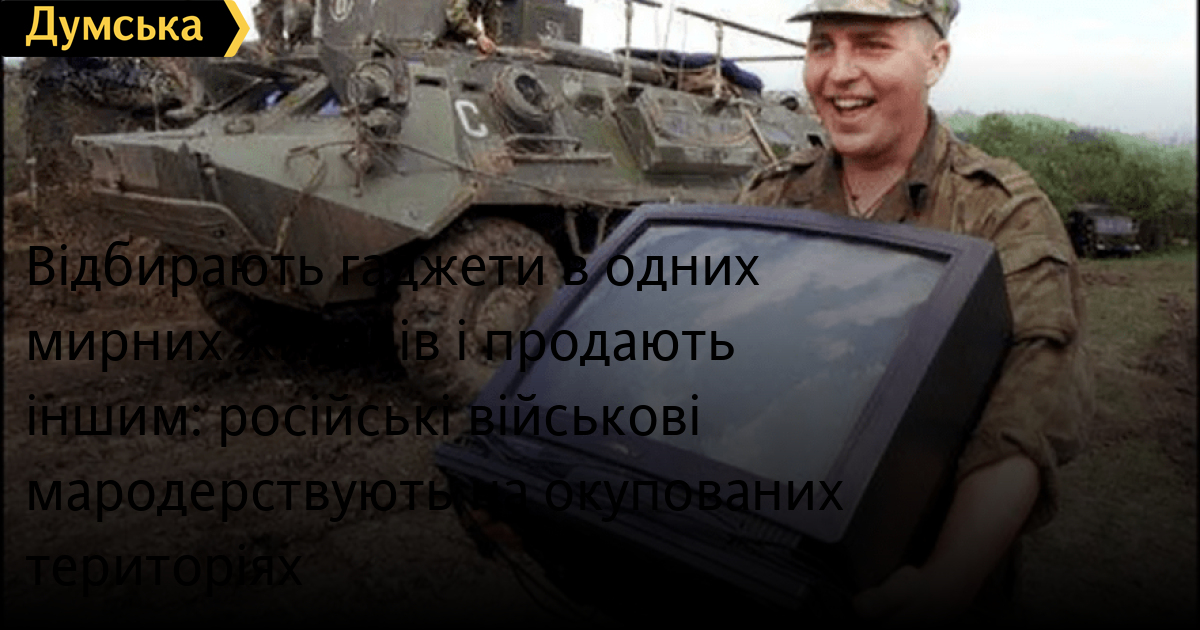 Гаджети та побутову техніку відбирають російські військові у мирних жителів на тимчасово захоплених територіях Херсонської області.