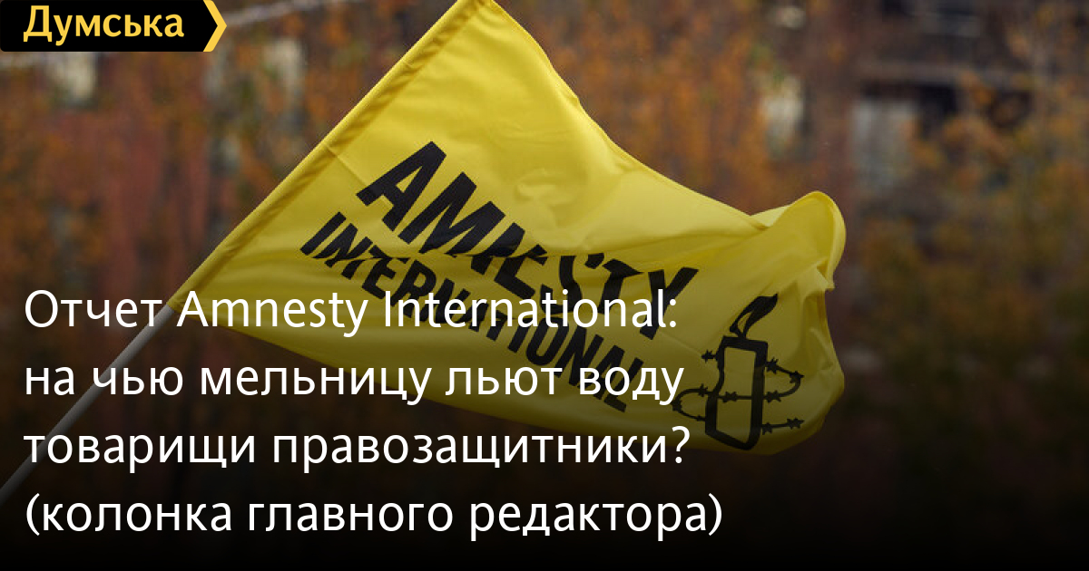 Главная проблема, на мой взгляд, в другом: своими заявлениями, основанными на ложном понимании принципа объективности, Amnesty, не знаю уж, сознательно или неосознанно, развязывает руки российским нацистам, оправдывает их преступления. Вчитайтесь в строки доклада. В чем обвиняют защитников Украины? В том, что они смеют оборонять украинские населенные пункты, находясь на их территории, занимая при необходимости объекты социальной инфраструктуры – например, школы.