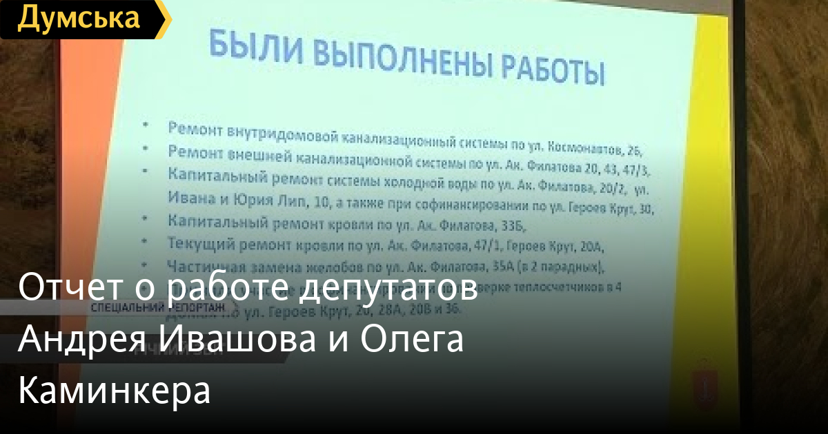 Депутат Одесского областного совета Андрей Ивашов и депутат Одесского городского совета Олег Каминкер отчитались о работе за 2019 год.