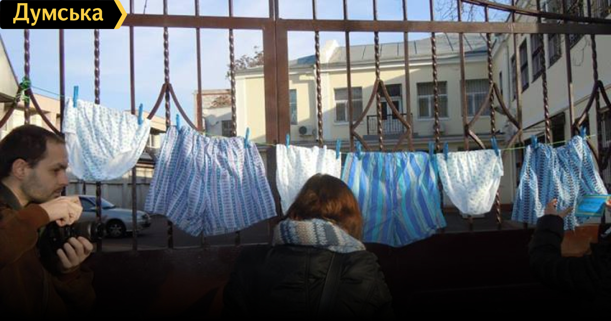 Как мы уже писали, вчера участники одесского Евромайдана провели акцию «Отдаем последнее» в защиту одесских предпринимателей, которые «все еще пытаются честно работать и не платить взятки». Активисты развесили на воротах следственного управления Миндоходов нижнее белье, символизирующее «последние трусы», которые сдирают с коммерсантов налоговые милиционеры.