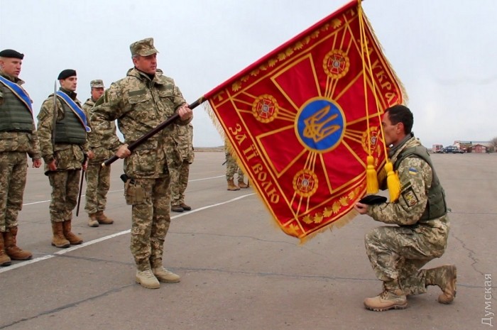 Отдельному батальону морской пехоты ВМСУ, который выполняет задания в зоне АТО, вручили Боевое знамя.