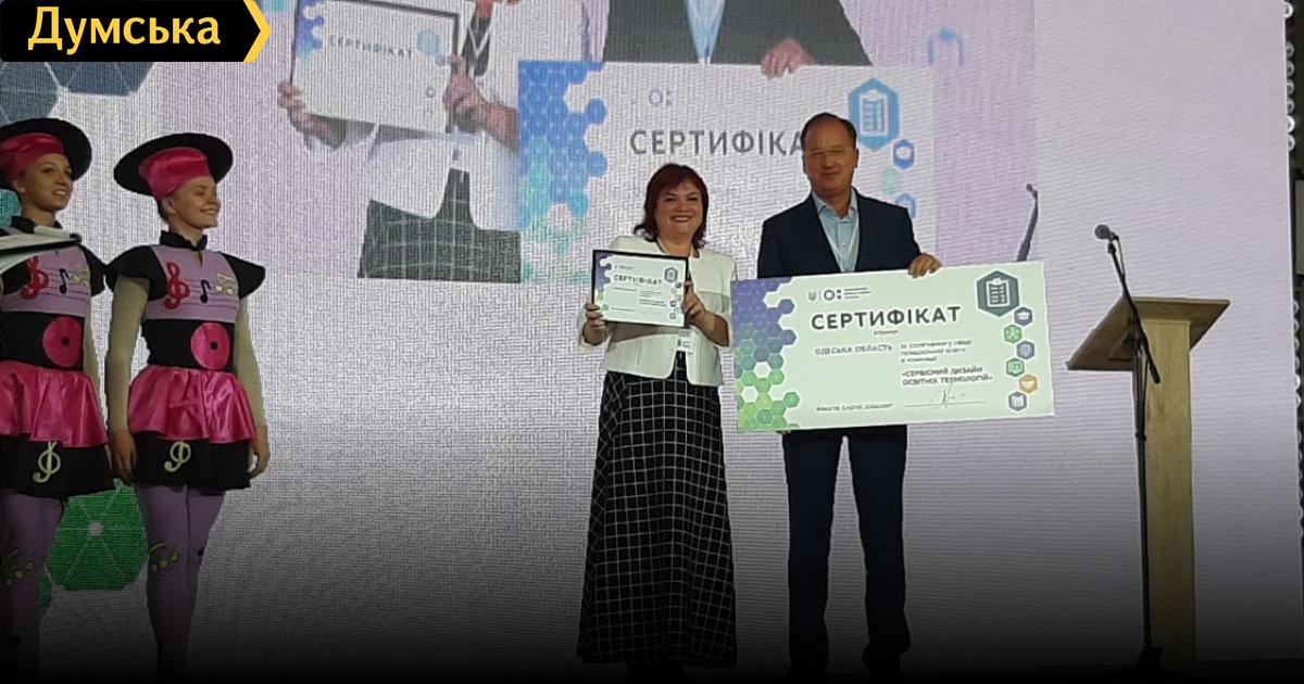 Награду за достижения в сфере внешкольного образования в номинации «Сервисный дизайн образовательных технологий» в рамках форума МОН «Внешкольное образование без барьеров. Модель будущего» получили директор центра Людмила Прокопенко и заместитель председателя Одесского облсовета Олег Радковский.