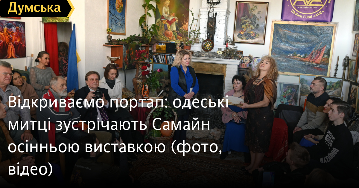 «Відкриваємо портал»: одеські митці зустрічають Самайн осінньою виставкою (фото, відео)Поки одесити готуються до Геллоуїну, Рита Колобова, голова благодійного фонду Ave, запросила друзів-митців до свого Камінного залу (Преображенська, 59/61), аби відзначити більш стародавнє свято – Самайн. Оскільки у ці дні відкривається портал поміж світами, підкреслює Рита, час загадувати бажання, а у воєнний час бажання у всіх, звичійно, одне — перемога України. В рамках постійно діючого проекту «Пори року» в галереї Камінного залу відкрилася виставка «Осінь». До експозиції потрапили картини господині простору та одеських майстрів Сергія Жану, Наталі Романовської — Цицак, Олександра Шуйського, Жанни Жеромської, Олександра Синельникова (фото), Миколи Вилкуна, Олени Гавдзинської, Есфірі Серпіонової та інших авторів, яких надихнула осінь. А музиканти та поети влаштували на вернісажі душевний імпровізований концерт.
