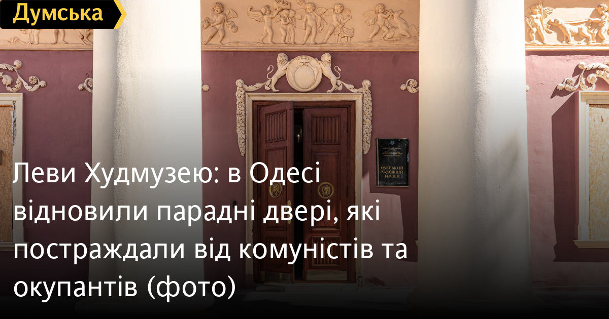 Дубові двері парадного входу до Одеського художнього музею відреставрувала команда проєкту «Тисячі дверей Одеси». Як розповів «Думській» керівник проєкту, урбаніст Олександр Левицький, на відновлення дверей пішло трохи більше двох місяців, а реставрації передувала робота з архівними фотографіями. У листопаді 2023 року Палац Потоцького на Софійській вулиці постраждав від ворожого обстрілу — російська ракета впала за кілька десятків метрів від пам'ятки архітектури національного значення. Вибухова хвиля та осколки побили фасад, вирвали віконні рами та посікли двері. «Двері відремонтували після пошкодження від вибуху і, якщо чесно, було б краще, якби ми їх одразу тоді взяли — косметичний ремонт ускладнив нам роботу, — розповів Олександр Левицький. — Один із найскладніших моментів полягав у тому, що це двері з пам'ятки архітектури національного значення. Потрібно було покопатися в архівах. Музей люб'язно надав нам фотоматеріали, які допомогли відтворити втрачені або змінені деталі. Ми змогли ідентифікувати зовнішній вигляд притворної планки та повернути її на місце». Архівна фотографія дверей За словами реставратора, за два століття свого існування (палац був побудований на зорі ХІХ століття) двері зазнали кількох значущих втрат. Спочатку латунних ручок було дві - на кожній зі стулок. До наших часів збереглася тільки одна. Крім того, колись двері відчинялися всередину будівлі. За радянських часів, найімовірніше, через вимоги пожежної безпеки, петлі перевісили, і двері стали відчинятися назовні. Новоділом виявилися декоративні ромби на внутрішній частині дверей. Їх зробили з фанери, якої в ХІХ столітті, звісно ж, не було, і, щоб відновити автентичний вигляд, їх демонтували.