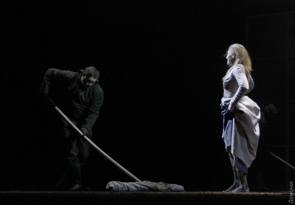Дочка Миллера Луиза (Мальвина Хачатрян) совсем непохожа на шиллеровскую героиню, она, как и ее кавалер Фердинанд (Михаил Дадалев) – странный фрукт, выросший в жуткой оранжерее, которую все время опрыскивают всякой ядовитой дрянью персонажи в костюмах химзащиты. Если добавить постоянно идущий в первые ряды едкий дым и жуткий запах резины от костюмов артистов, можно сделать вывод: в зале лучше сидеть в респираторах. Помнится, у Владимира Сорокина был такой сюжетный ход: спектакль идет в водах канализации, актеры и зрители в водолазных костюмах, вот напомнило…