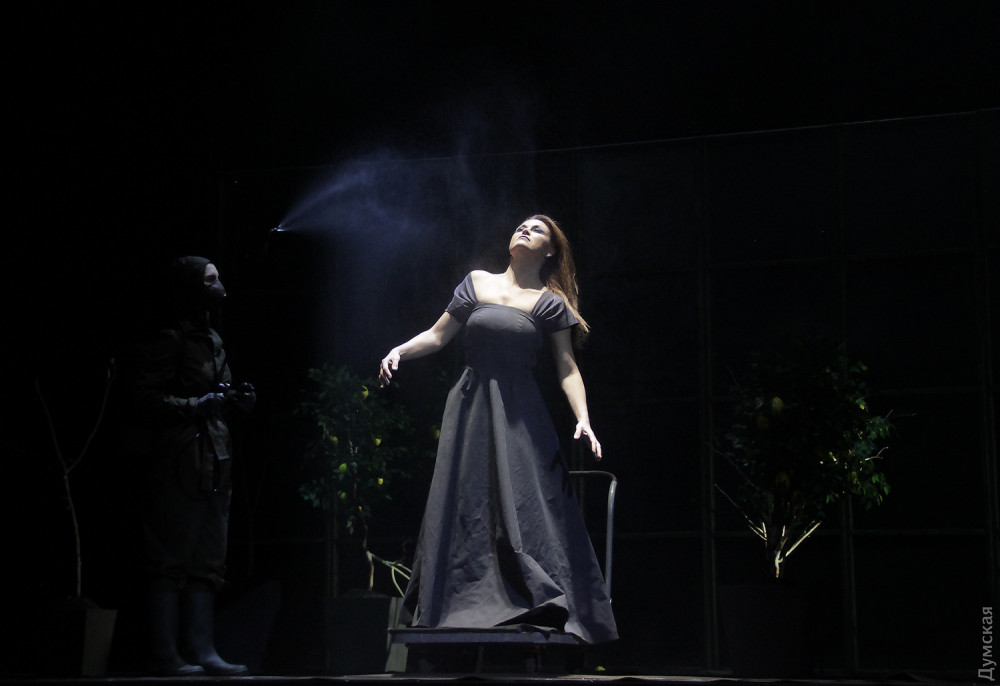 Как ни странно, Луиза с Фердинандом в этом спектакле – далеко не самые главные, их, по большому счету, и не жалко. С первых минут понимаешь, что растущие в кадках лимончики станут в финале отравленным лимонадом. А вот старшее поколение, похоже, росло на здоровой почве, без удобрений и химикалий, просто потом что-то пошло не так. Поскольку речь у молодых артистов достаточно бесцветная, образы вышеупомянутого Миллера, президента фон Вальтера (Яков Кучеревский), княжеской фаворитки леди Мильфорд (Ольга Петровская) перетягивают все внимание на себя, это поколение умеет говорить со сцены! Леди Мильфорд – роскошный цветок, но она до того мутировала, что не может без постоянного опрыскивания некими химикалиями, чуть что, начинает вянуть на глазах, и кажется, будто опадают лепестки… А первое ее появление, когда она выдергивает ножки из вазона с землей… Судьба ведь оторвала леди в отрочестве от родных корней, от семьи, вот и стала она сексуальной рабыней князя, но теперь ее прельщают перспективы вступить в процесс опыления уже с молодым красавцем, тем самым Фердинандом, сыном фон Вальтера…