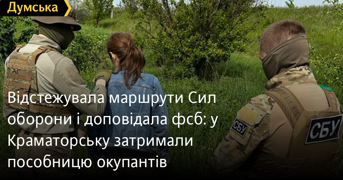 Пособницю окупантів, яка відстежувала маршрути переміщення Збройних сил України на слов'янському та краматорському напрямках, затримали правоохоронці.