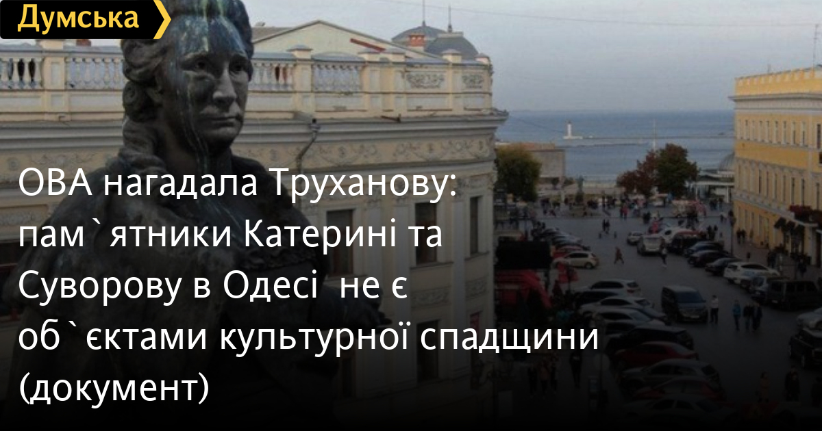 Одеська обласна військова адміністрація офіційно повідомила Одеській міськраді, що одеські пам'ятники Катерині ІІ та Олександру Суворову не мають статусу об'єктів культурної спадщини, і для їх демонтажу чи перенесення жодні дозволи та погодження не потрібні.