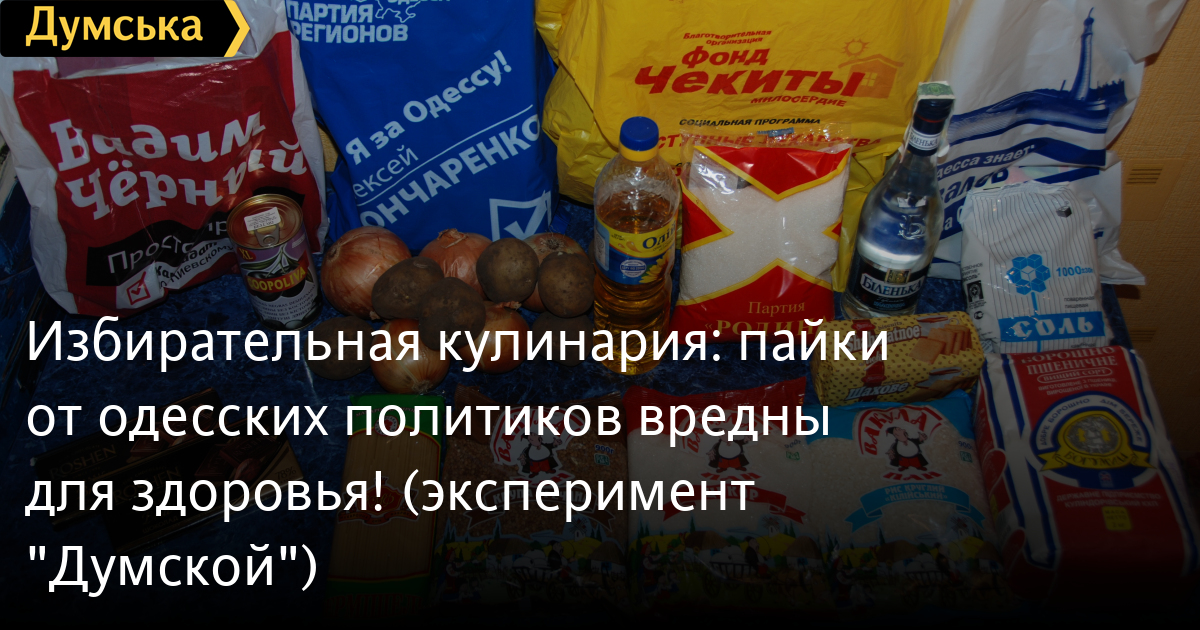 В сумрачную выборную годину множество кандидатов использовали в своей кампании давний проверенный метод агитации – раздачу пайков. Обычно один продуктовый набор обходится заказчику в сумму, не превышающую 50 гривен. Пайки сотнями раздаются пенсионерам как наиболее активно голосующему электорату. Украинский стандарт — гречка, буханка хлеба, бутылка самой дешевой водки, но бывают и «подарки» с фантазией.