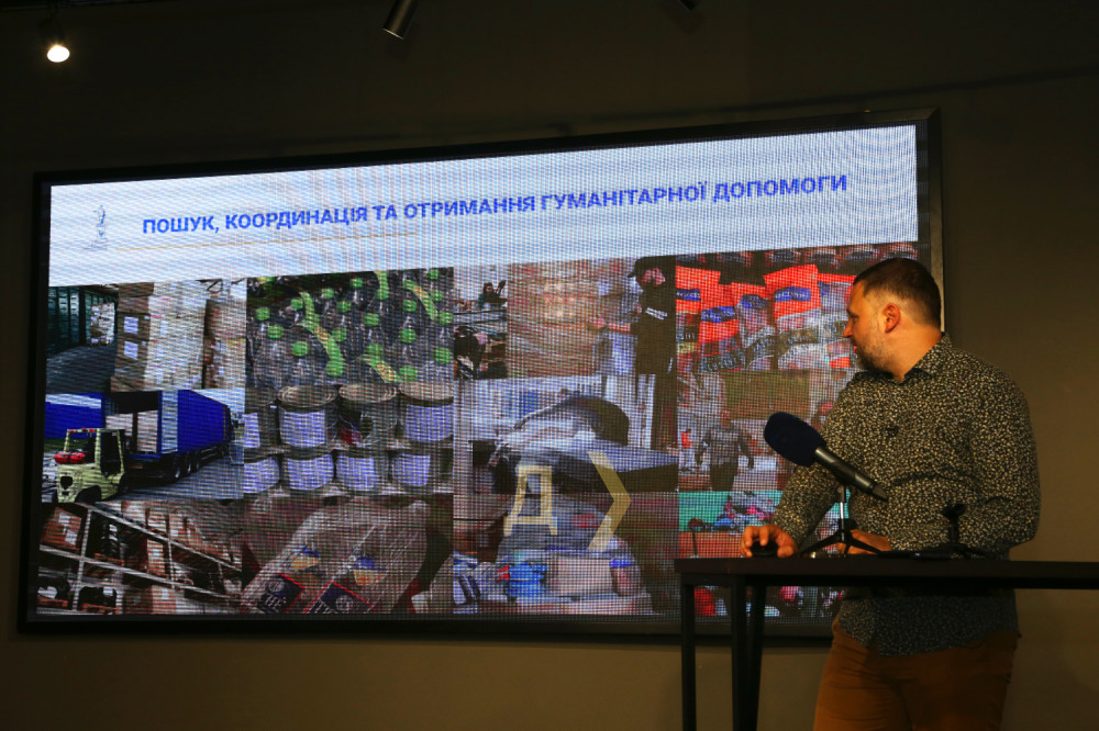 За три месяца работы штаб получил 3218 ящиков с гумпомощью, из них 965 в мае (776 – продовольствие, 122 детские и хозтовары, 67 одежда и прочее). Для транспортировки задействовали сотни большегрузных автомобилей и 40 вагонов «Укрзалізниці».