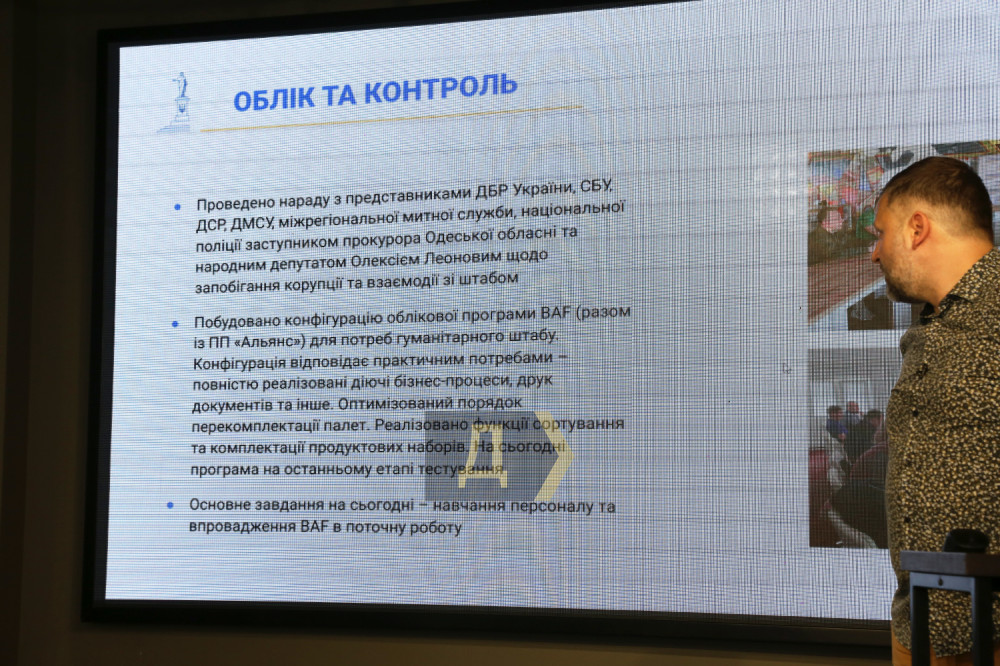 В штабе сейчас задействовано 226 волонтеров, 133 из них работают на продовольственных складах. Пять складских помещений есть в Одессе, еще семь — в райцентрах и 94 склада — в громадах области. Также в структуре штаба задействован один склад в Румынии.