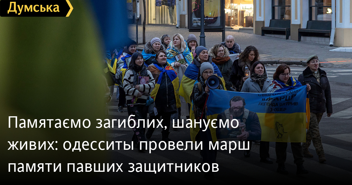 Марш памяти в честь воинов, погибших в российско-украинской войне, прошел сегодня в Одессе. Как сообщает корреспондент «Думской», участники акции — семьи погибших, представители общественных организаций, волонтеры и побратимы — собрались у фонтана на Соборной площади с флагами, портретами своих родных и лампадками. Колонна прошла памятным шествием по Дерибасовской и Европейской к импровизированному народному мемориалу на Европейской площади. Участники несли портреты погибших героев и скандировали: «Пам’ятаємо загиблих, шануємо живих». Среди них — Наталья Мудрецова, жена одессита Павла, погибшего в Запорожской области. Герой воевал с 2014 года. По словам супруги, в 2022 году решение было однозначным — возвращаться на фронт, защищать страну. «Он был очень душевным человеком, компанейским, — рассказала женщина. — С ним никогда не было скучно, он очень много всего знал… Его очень не хватает». По мнению вдовы, такие акции помогают семьям поддерживать друг друга и легче переносить боль утраты. На Европейской площади у подножия постамента участники зажгли лампадки и провели молебен. Руководительница ОО «Семья ангелов света» Ангелина Любчак подчеркнула, что сохранение памяти — обязанность общества. «Очень грустно, что наше общество иногда забывает, благодаря чему мы каждый день живем, — отметила Ангелина. — Наша задача — сохранить эту память». Марш завершился в тишине — перед десятками фотографий тех, кто отдал жизнь за Украину. СМЕРТЬ РОССИЙСКИМ ОККУПАНТАМ! Заметили ошибку? Выделяйте слова с ошибкой и нажимайте control-enter |