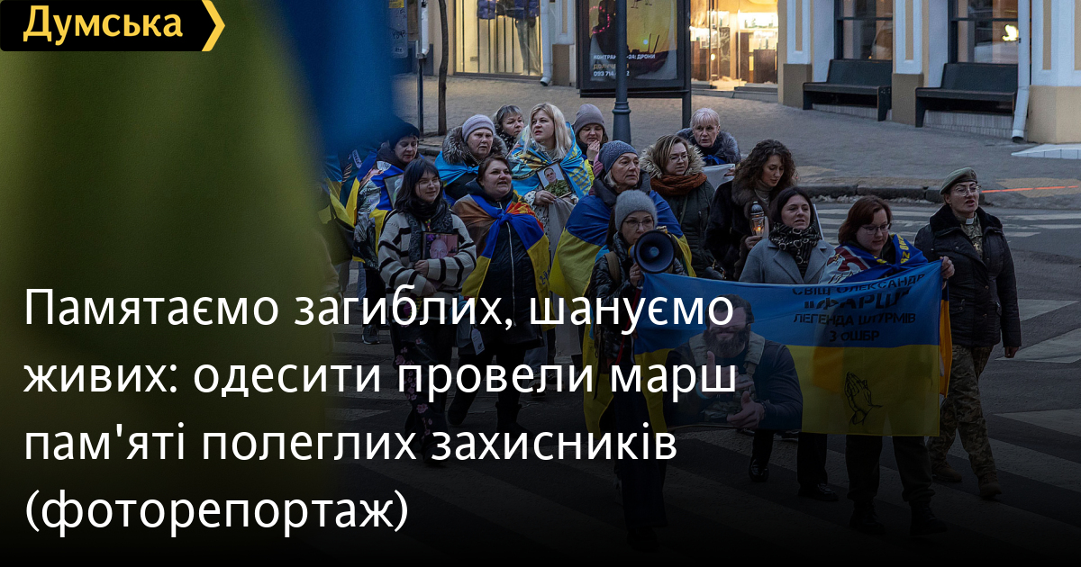 Марш пам'яті на честь воїнів, які загинули в російсько-українській війні, пройшов сьогодні в Одесі. Як повідомляє кореспондент «Думської», учасники акції — сім'ї загиблих, представники громадських організацій, волонтери та побратими — зібралися біля фонтану на Соборній площі з прапорами, портретами своїх рідних і лампадками. Колона пройшла пам'ятною ходою по Дерибасівській і Європейській до імпровізованого народного меморіалу на Європейській площі. Учасники несли портрети загиблих героїв і скандували: «Пам'ятаємо загиблих, шануємо живих». Серед них — Наталія Мудрецова, дружина одесита Павла, який загинув у Запорізькій області. Герой воював з 2014 року. За словами дружини, у 2022 році рішення було однозначним — повертатися на фронт, захищати країну. «Він був дуже душевною людиною, товариським, — розповіла жінка. — З ним ніколи не було нудно, він дуже багато всього знав… Його дуже не вистачає». На думку вдови, такі акції допомагають сім'ям підтримувати один одного і легше переносити біль втрати. На Європейській площі біля підніжжя постаменту учасники запалили лампадки та провели молебень. Керівниця ГО «Сім'я ангелів світла» Ангеліна Любчак підкреслила, що збереження пам'яті — обов'язок суспільства. «Дуже сумно, що наше суспільство іноді забуває, завдяки чому ми щодня живемо, — зазначила Ангеліна. — Наше завдання — зберегти цю пам'ять». Марш завершився в тиші — перед десятками фотографій тих, хто віддав життя за Україну. СМЕРТЬ РОСІЙСЬКИМ ОКУПАНТАМ! Помітили помилку? Виділяйте слова з помилкою та натискайте control-enter |