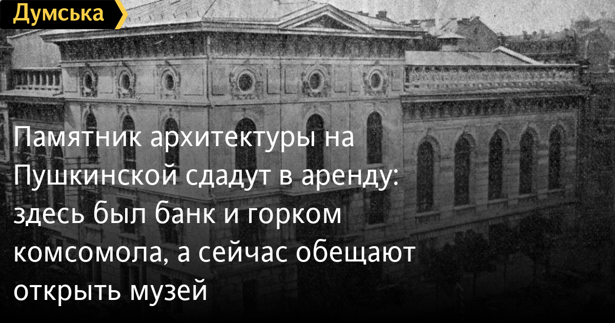Одесский областной совет намерен сдать в аренду памятник архитектуры местного значения на Пушкинской, 10 - здание «Общества взаимного кредита» постройки начала XX века. До 2015 года в нем размещался банк «Порто-Франко».