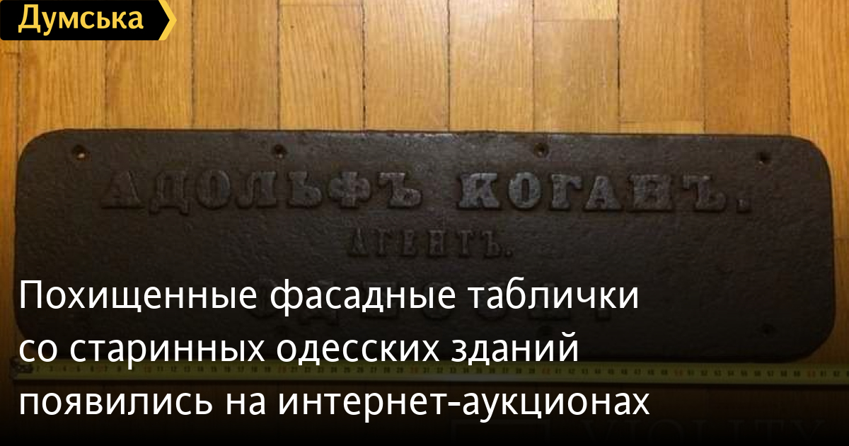 В качестве примера ученый указал на сообщение о продаже таблички с надписью «Адольфъ Коганъ. Агентъ. Одесса». Раритет был выставлен на торги всего за 5 тысяч грн.